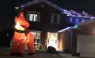Members Dave Hunt and Carol Streeter shown holding Tweedle Wee upside down. Maybe at the next game, they will hold the esteemed mascot properly